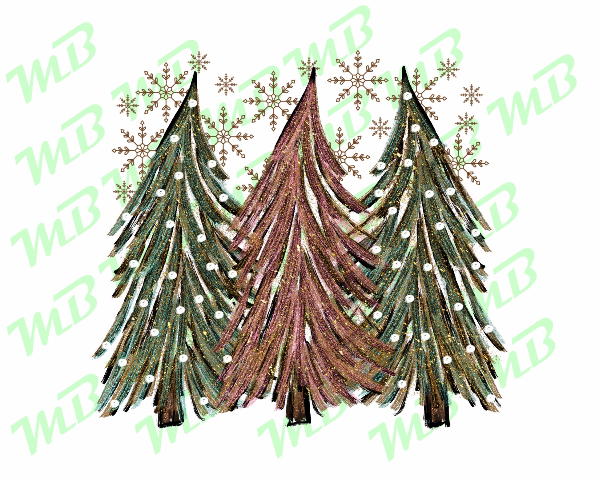 WATERCOLOR TREES CHRISTMAS DTF PRINT